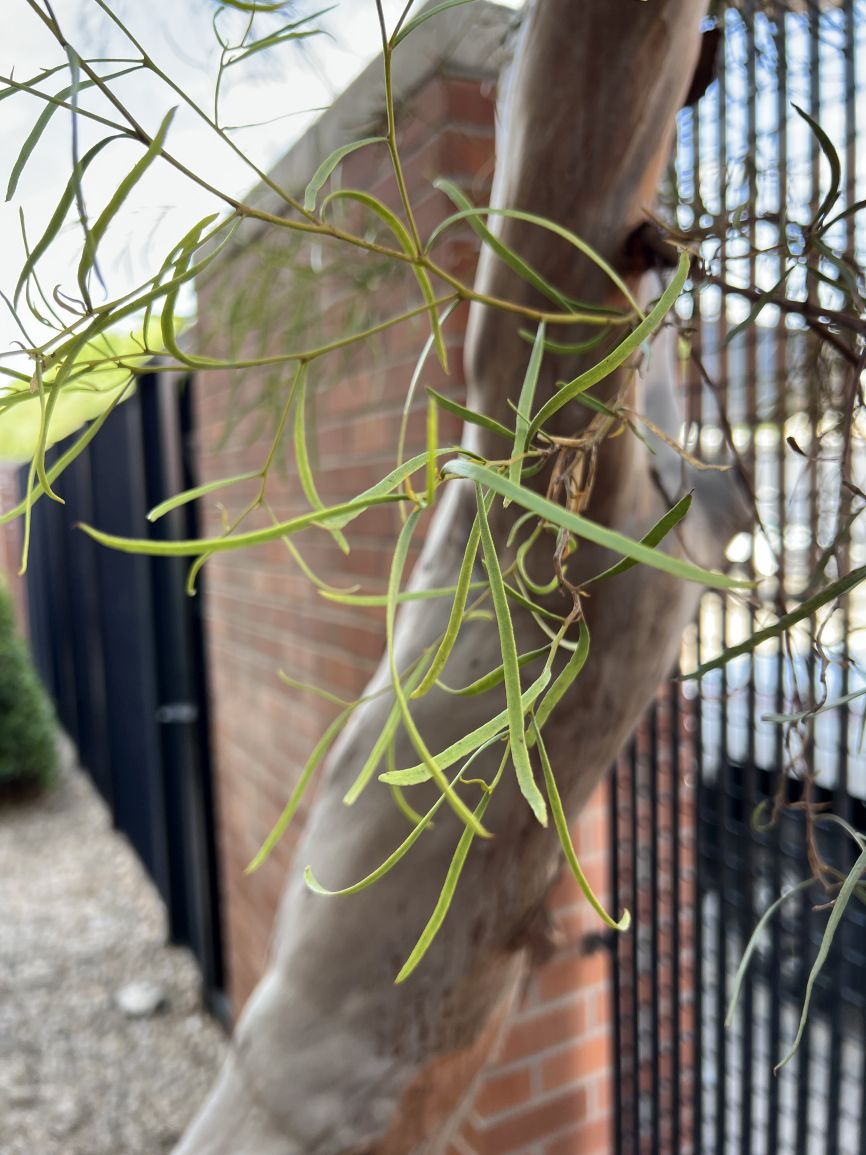 This species of Eucalyptus is greatly admired for its graceful, arching canopy, multiple-trunked low-branching form and its smooth, satiny metallic red bark that peels to reveal copper and white tones (10). It also appreciated as a landscape ornamental because of its shiny, narrow deep green leaves, and its feathery crown, which casts a light dappled shade (10). Showy, creamy-yellow flowers also add ornamental appeal and value to bee pollinators. The species is suited for USDA Hardiness zones 9 and higher, prefers full sun and tolerates soil pH from slightly acidic to strongly alkaline (10). It is susceptible to Armillaria, Phytophora, Root Rot and Beetle Borers but resistant to Texas Root Rot and Verticillium Wilt (10).